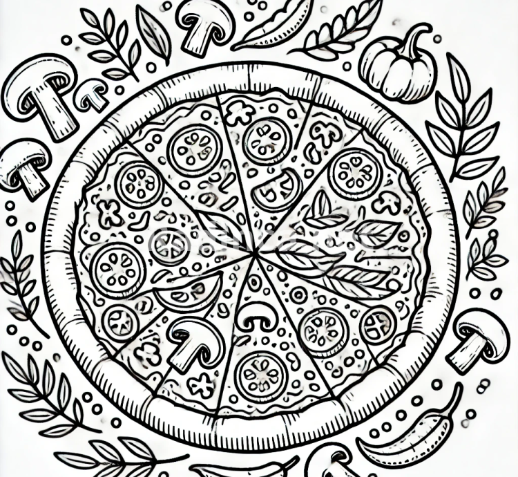 Dive into a delightful coloring adventure with our pizza-themed page! Perfect for kids, this page features a large pizza adorned with various toppings, including mushrooms, pepperoni, and fresh vegetables. Each topping is outlined with bold lines, making it easy for children to bring their pizza masterpiece to life. This coloring page is ideal for sparking creativity while introducing young artists to the world of food art. Great for home activities, classroom fun, or creative downtime, this page encourages imagination and fine motor skill development. Color the crust golden, the toppings vibrant, and create your own delicious design!